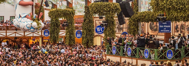 The Oktoberfest takes place on the Theresienwiese (hence the name ‘Wiesn’), a large open space in central Munich kept specifically for the Oktoberfest. Located just a few hundred yards south of the main station, you can reach Theresienwiese either on foot or by public transport: as well as Theresienwiese station, Hackerbrücke, Schwanthalerhöhe, and Goetheplatz are all within easy reach.